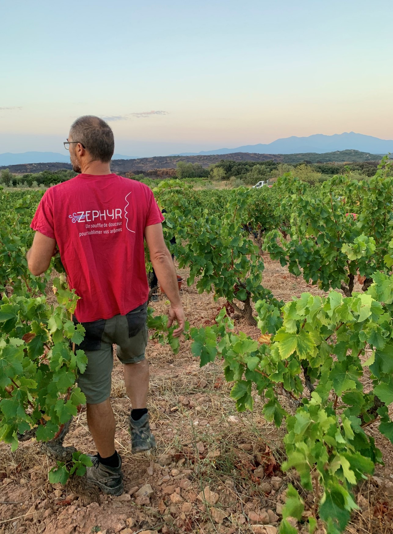 En 2001, il s’installe à Calce, dans les Pyrénées-Orientales, comme attiré par ce lieu unique. Il prend possession de 8,5 hectares de vieilles vignes, dont des Carignans plantés en 1940, sur des coteaux de schistes offrant une vue imprenable sur la Méditerranée, les Corbières et les Pyrénées. Ce moment marque le début de sa propre aventure viticole, faite de liberté et d’engagement total.
